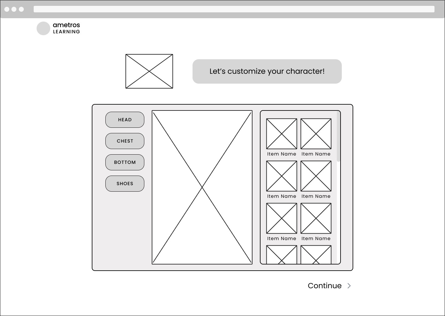 Prototype functionalities were limited, such as not having many interactions in the customization wireframe. 6 out of 7 participants wanted a clickable and variety of options for avatar customizations.