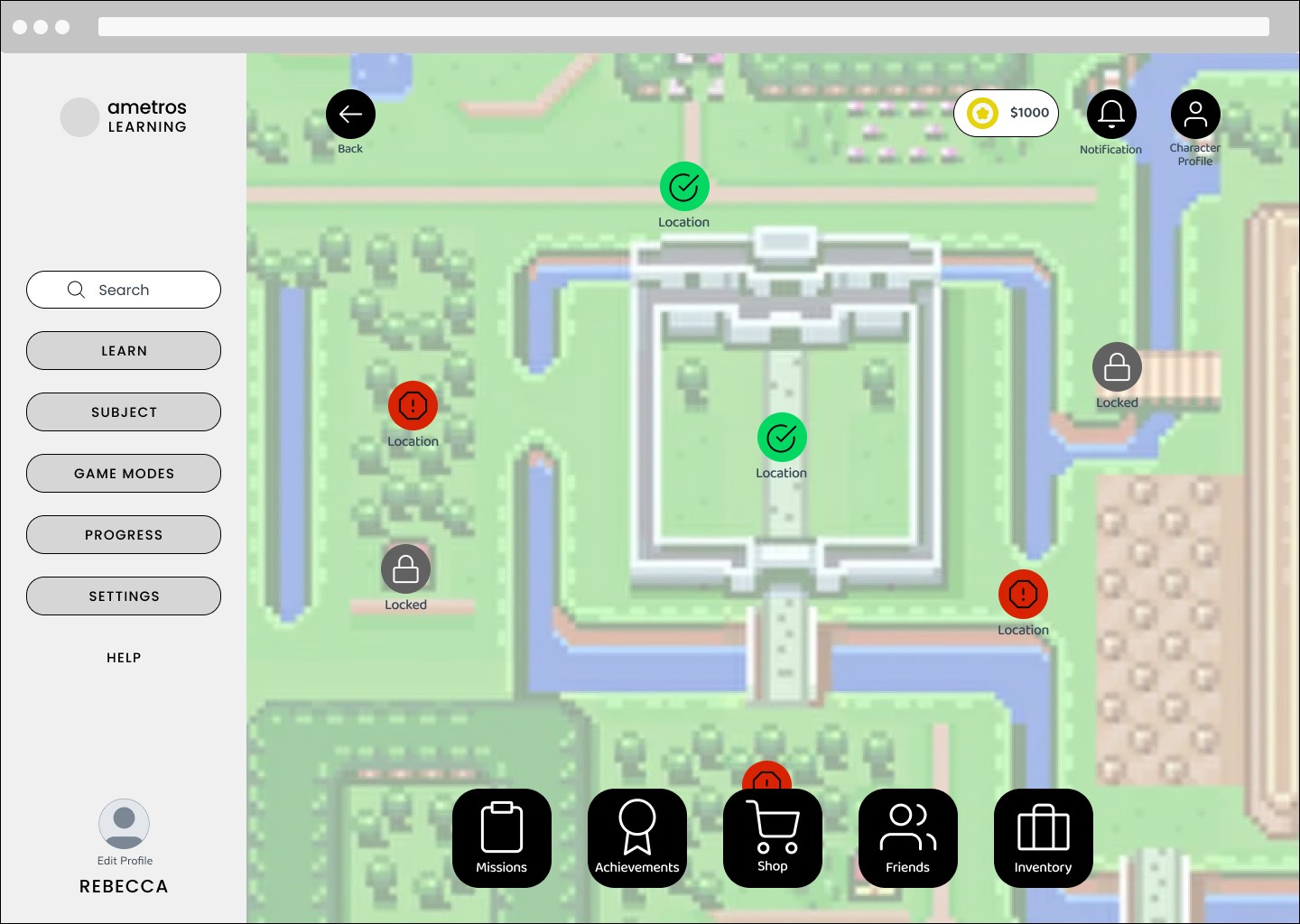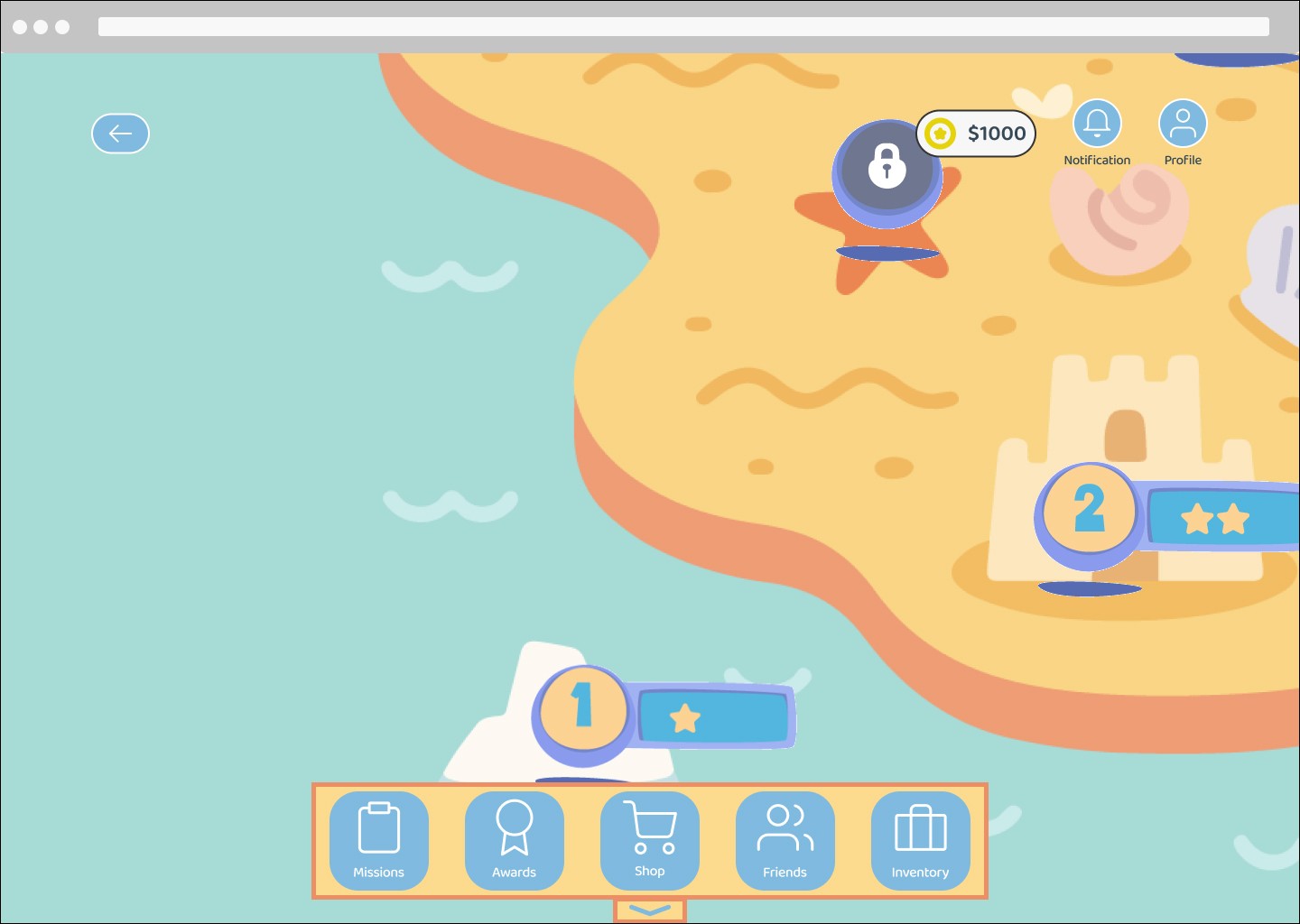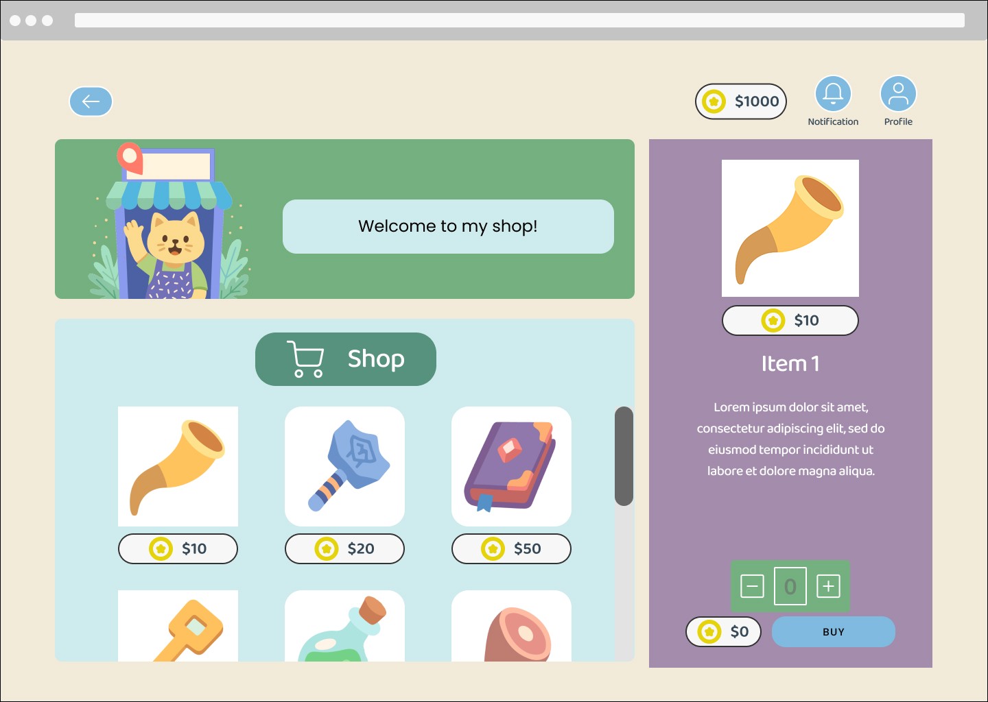 Game-Based Learning Elements: Familiar game components—like “Shop” and “Inventory” screens—leverage common gaming terminology to support intuitive navigation for users with gaming experience.