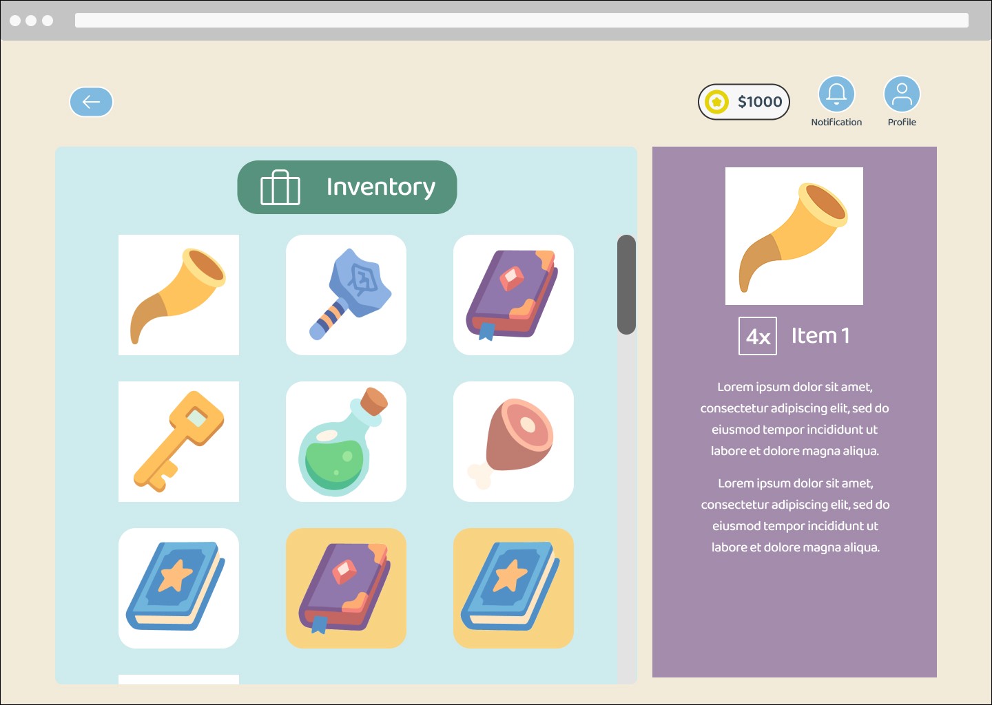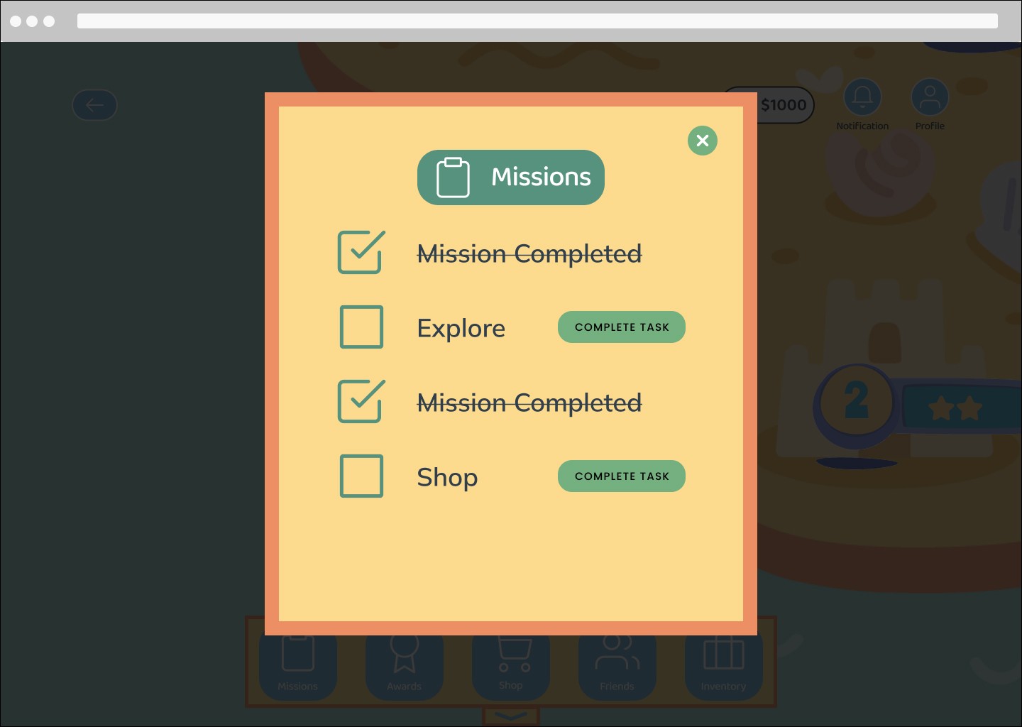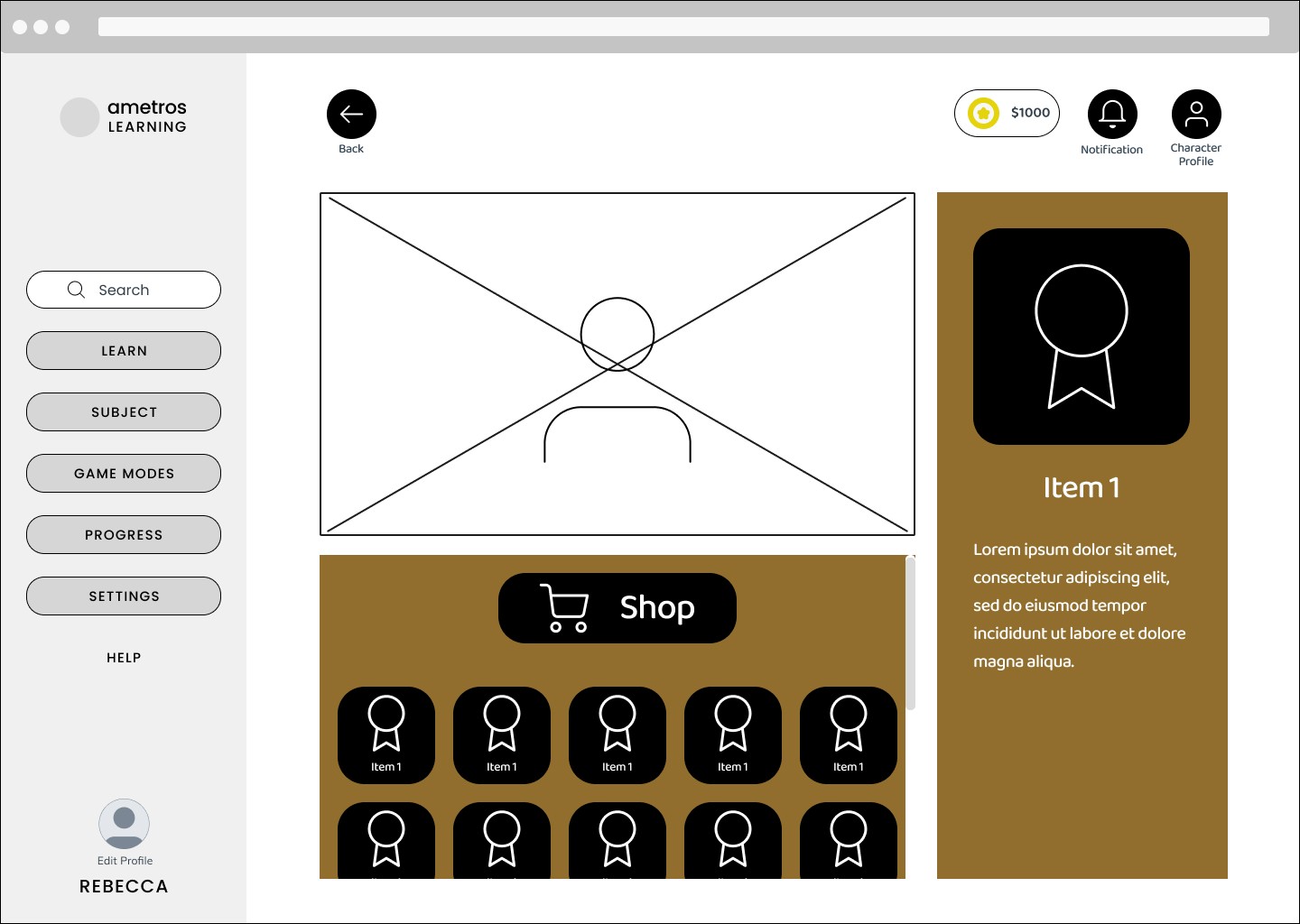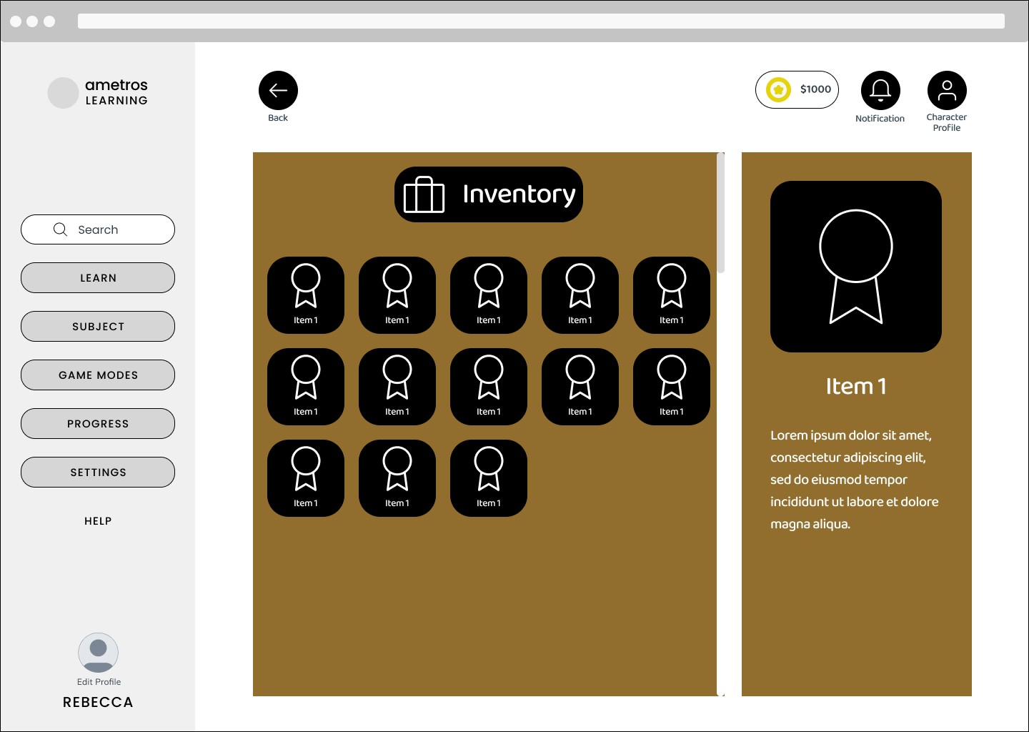 Game-Based Learning Elements: Familiar game components—like “Shop” and “Inventory” screens—leverage common gaming terminology to support intuitive navigation for users with gaming experience.
