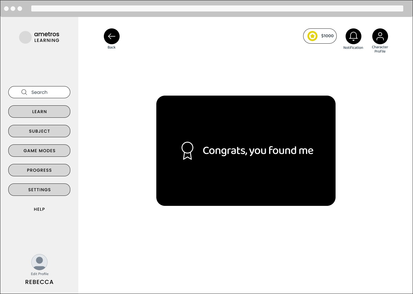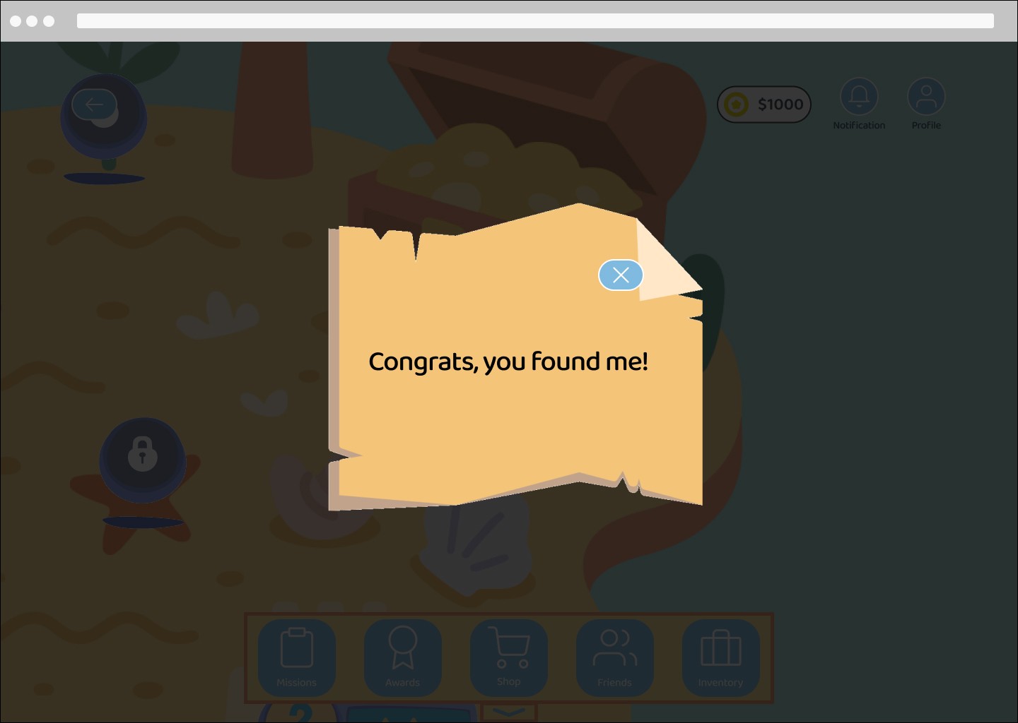 Biggest Challenge: trying to mimic the experience of a game through a Figma prototype and offering an experience of a game through the limitations of Figma prototype.