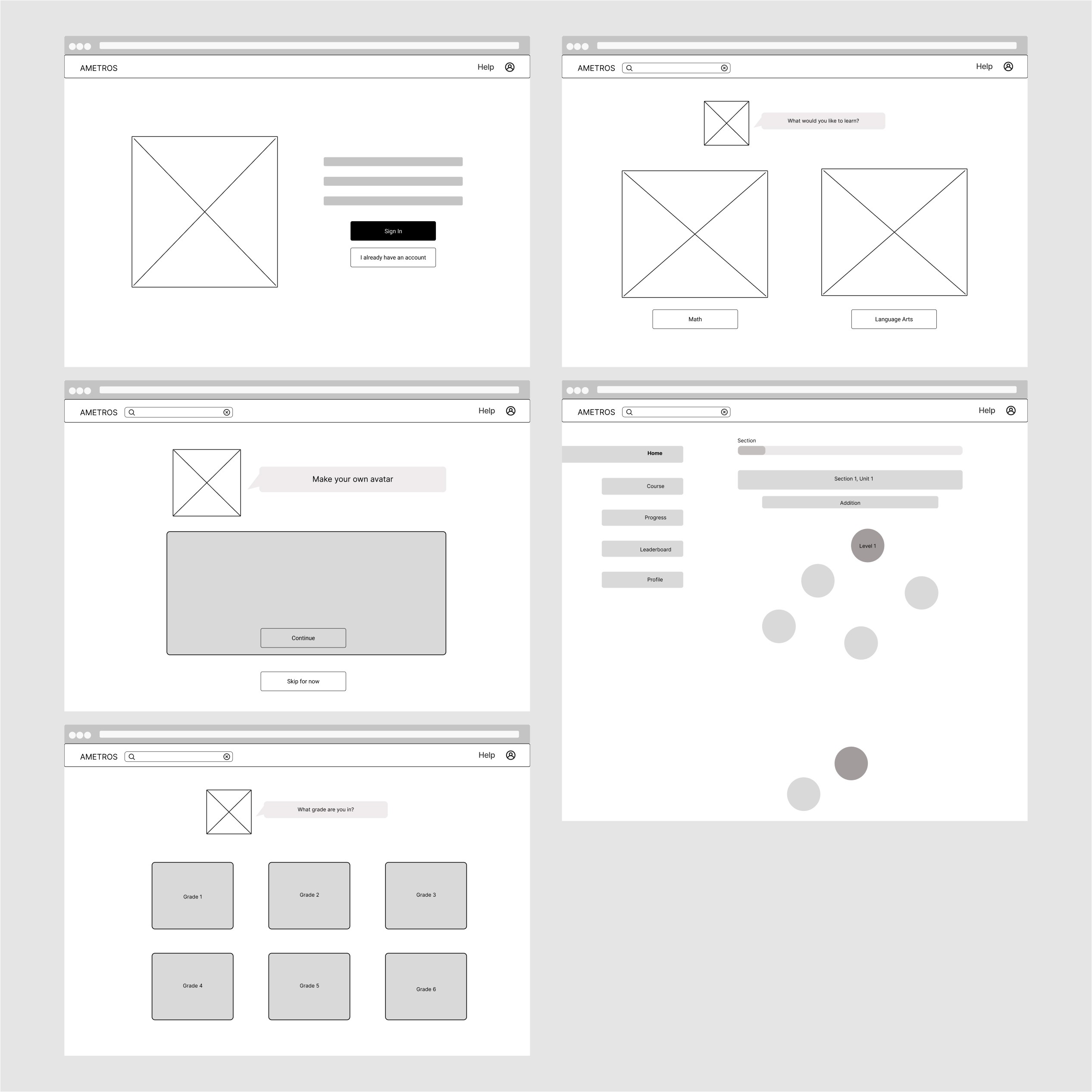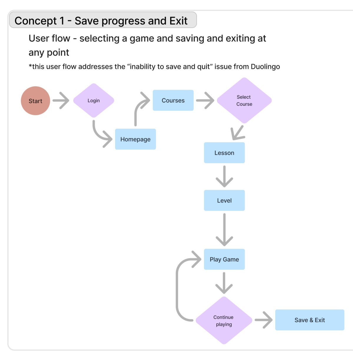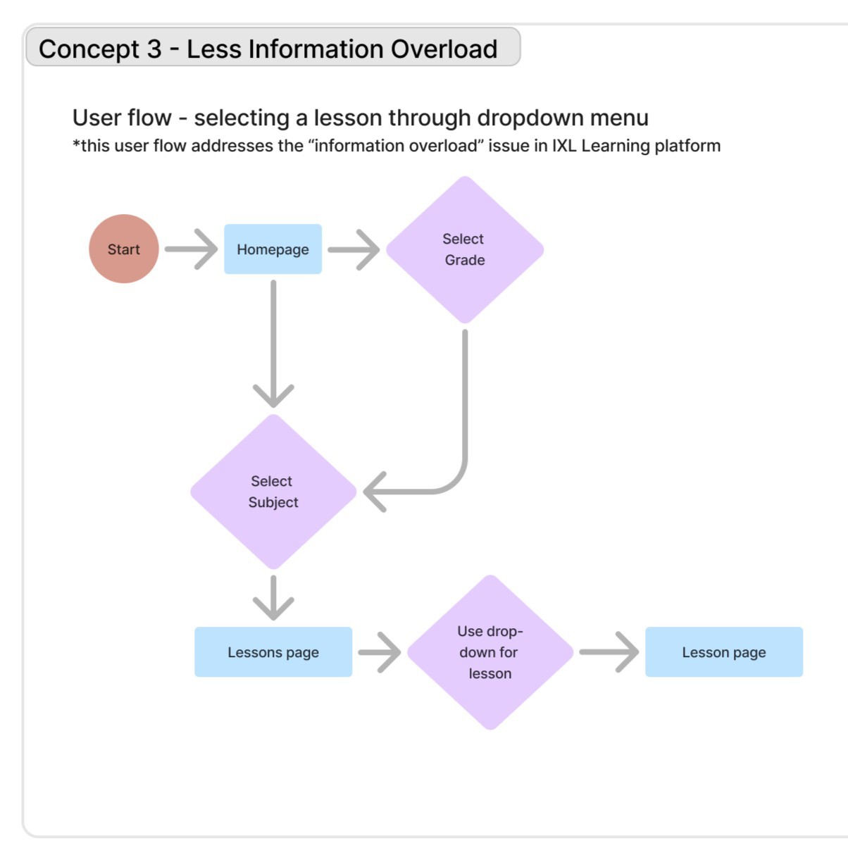 After conducting the SWOT Analyses and Heuristic Evaluations on Khan Academy, Duolingo, and IXL Learning, we picked out one major issue we found from each platform to generate three initial concept designs to wireframe.