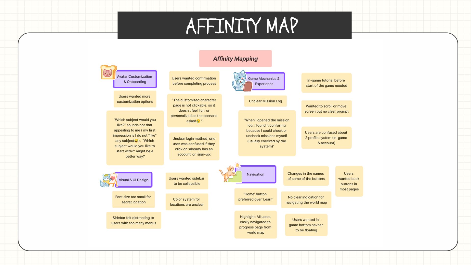 Some button placements, such as the sidebar, were not as intuitive. Users found that the sidebar was a hindrance when playing the game.