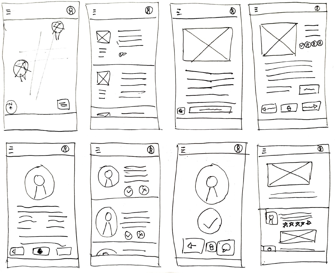 Multiple wireframe sketches were created during the ideation process in which a streamlined low-fidelity wireframe is created on Figma.