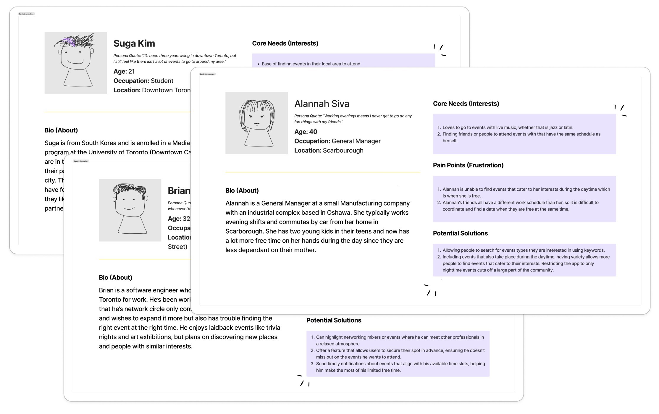 Young adults struggle to find events that match their interests while also facing challenges in meeting like-minded people to attend with.